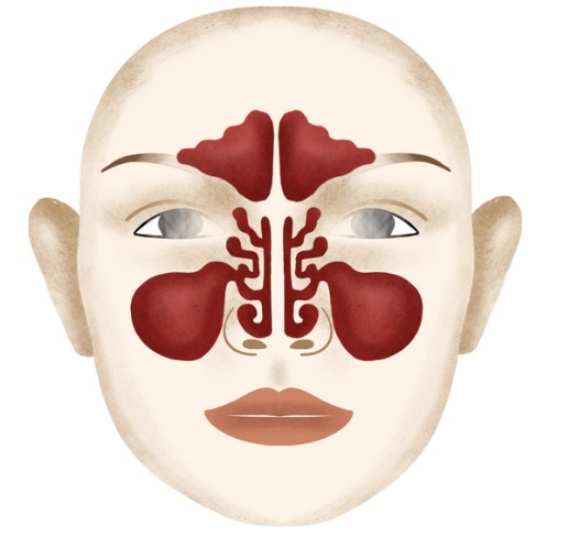 「副鼻腔炎(ふくびくうえん)」とは、鼻の奥にある“副鼻腔”と呼ばれる空洞部分に炎症が起き、膿(うみ)や粘り気のある鼻水がたまってしまう状態のことを言います。
