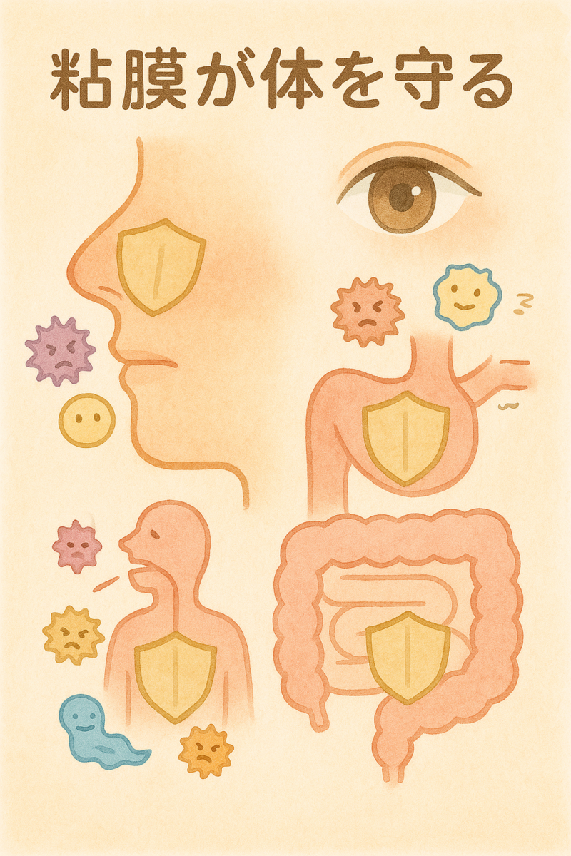 粘膜とは、鼻・喉・目・気管支・消化管など、体の入り口を守る“防御壁”のようなもの。